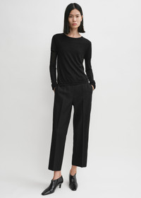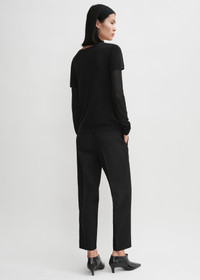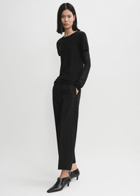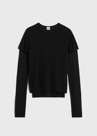 TOTEME top layered to create the illusion of a T-shirt styled over a long-sleeved top. It is finely knitted from semi-sheer Lyocell blended with cashmere to a regular-fitting silhouette that works with anything from formal trousers to jeans. Details & Fit - Black - 88% Lyocell, 10% cashmere, 2% polyamide - Cool hand wash - Style number 243-WRT0348-YA0079 - The model is 181cm/5'11 tall and wears a size S - True to size
