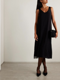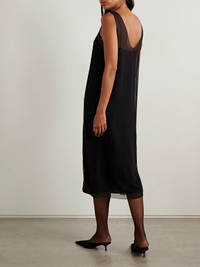 Layered silk-chiffon midi dress Black