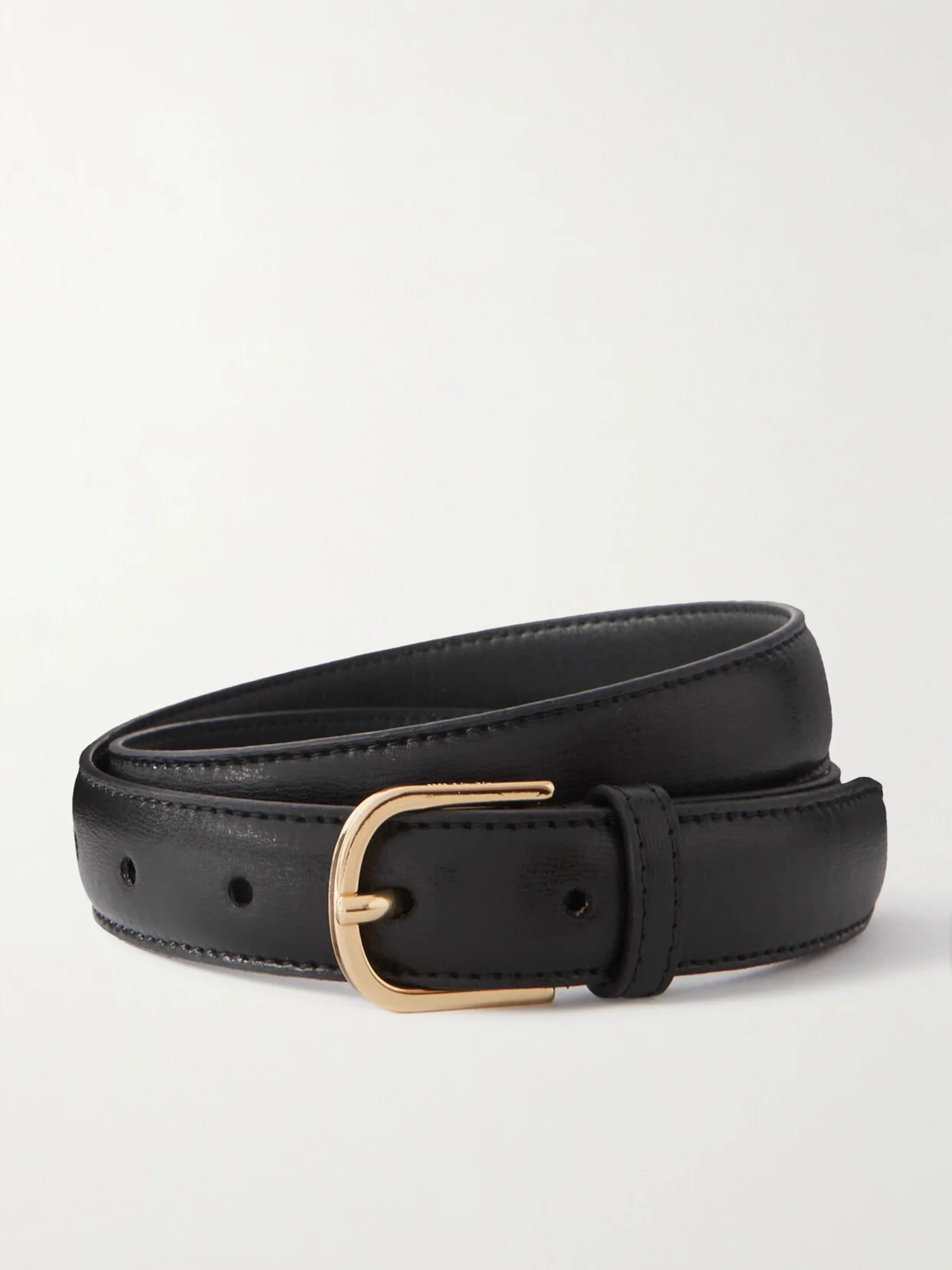 Upgrade any outfit with TOTEME's belt. It's made from smooth black leather with a gold-tone buckle that's engraved with the label's name. The simple design means it can be styled with almost anything.