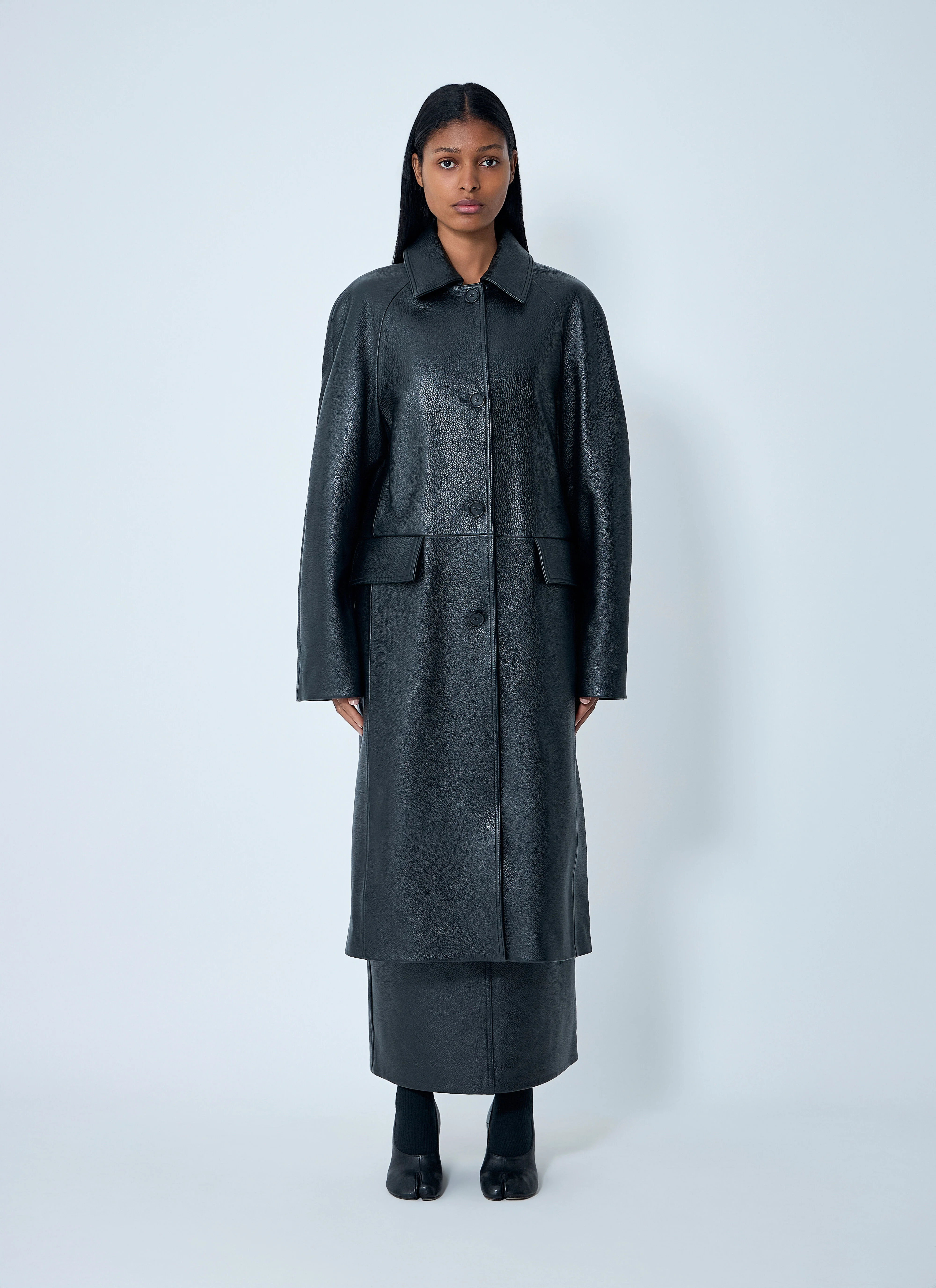 Leather in pebble-grain finish. - Classic collar - Front button fastening - Long sleeves - Flap pockets at side - Panel construction - 100% Leather. Specialist dry clean - Color: Black - Code: 254-WRO0280-LE0070-001