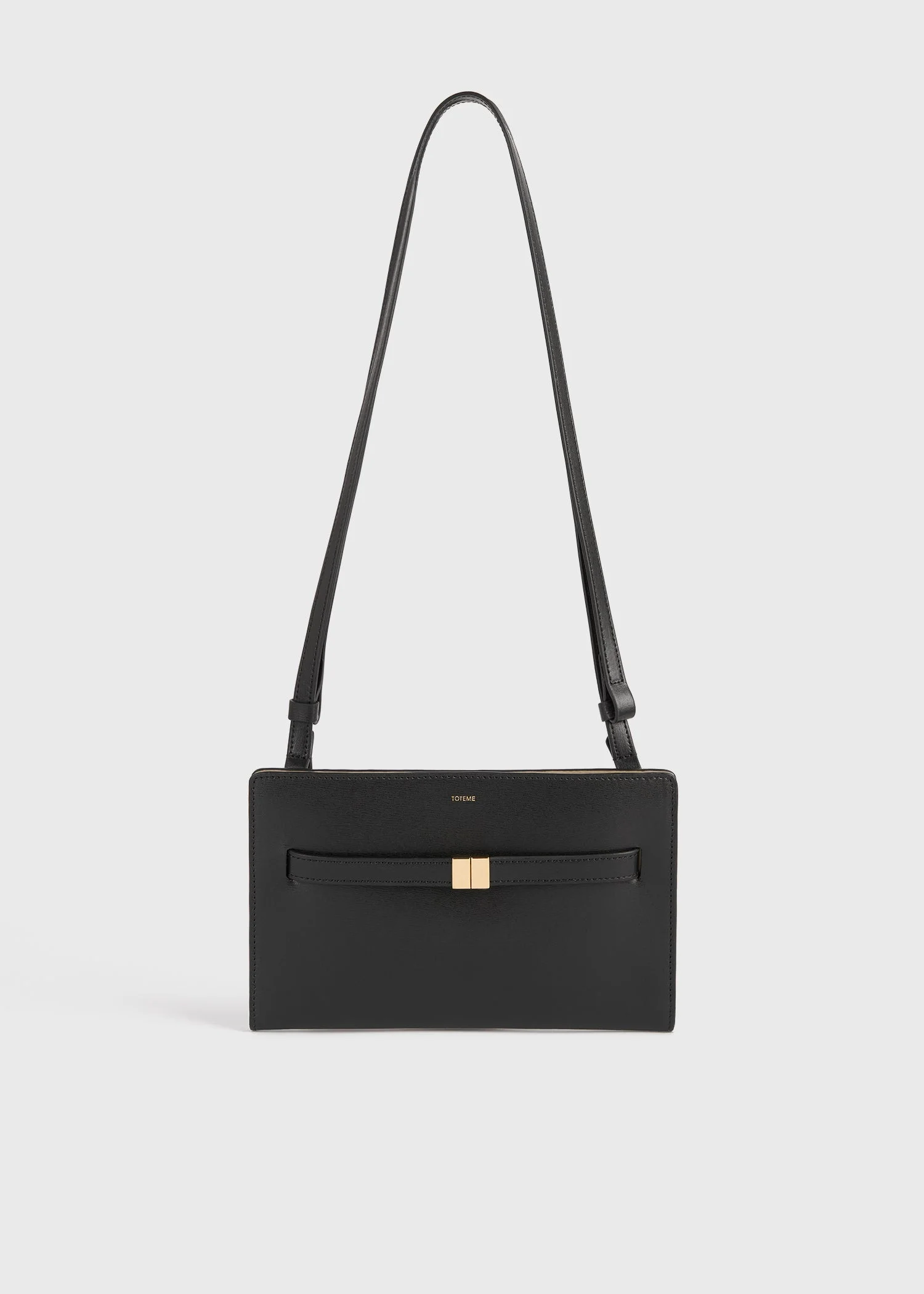 A bag designed to sit close to the body to keep your essential accessories at hand. It is made in Italy from palmellato leather set with a slide clasp matching our Belted bucket bag, then fitted with three internal compartments. Adjust the strap to carry it from the shoulder or across the torso. Details - Black - Adjustable strap - Gold-tone metal slide clasp - Three internal compartments, snap buttons - 100% cow leather - Care instructions and dust bag included - Style number 261-WAM0052-LE0025 Fit information - Strap drop: adjustable (from 60cm/23.6" to 33cm/13") - Height 13cm/ 5" - Width 21cm/8.3" - Adjustable strap length, expandable inner compartments Origin & Certificates - Country of origin: Spain - Manufacturer: Pinavall