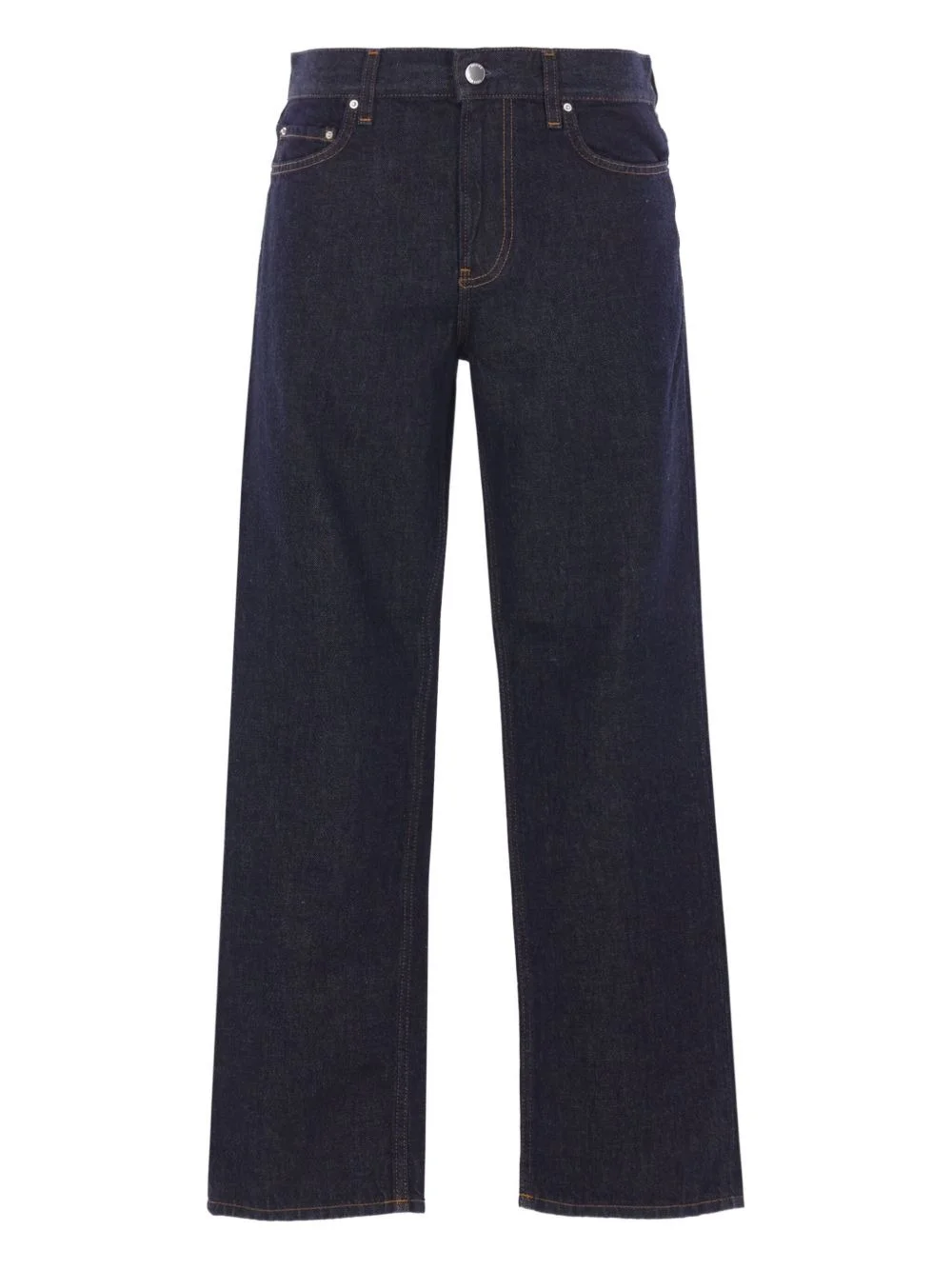logo-patch jeans Highlights - Blue - Contrasting topstitching - Logo patch - Five pockets - Button fastening Made in Italy Composition Cotton 100% Washing instructions Read Manufacturer Guidelines