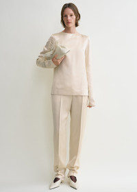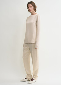 Long-sleeve satin top ecru