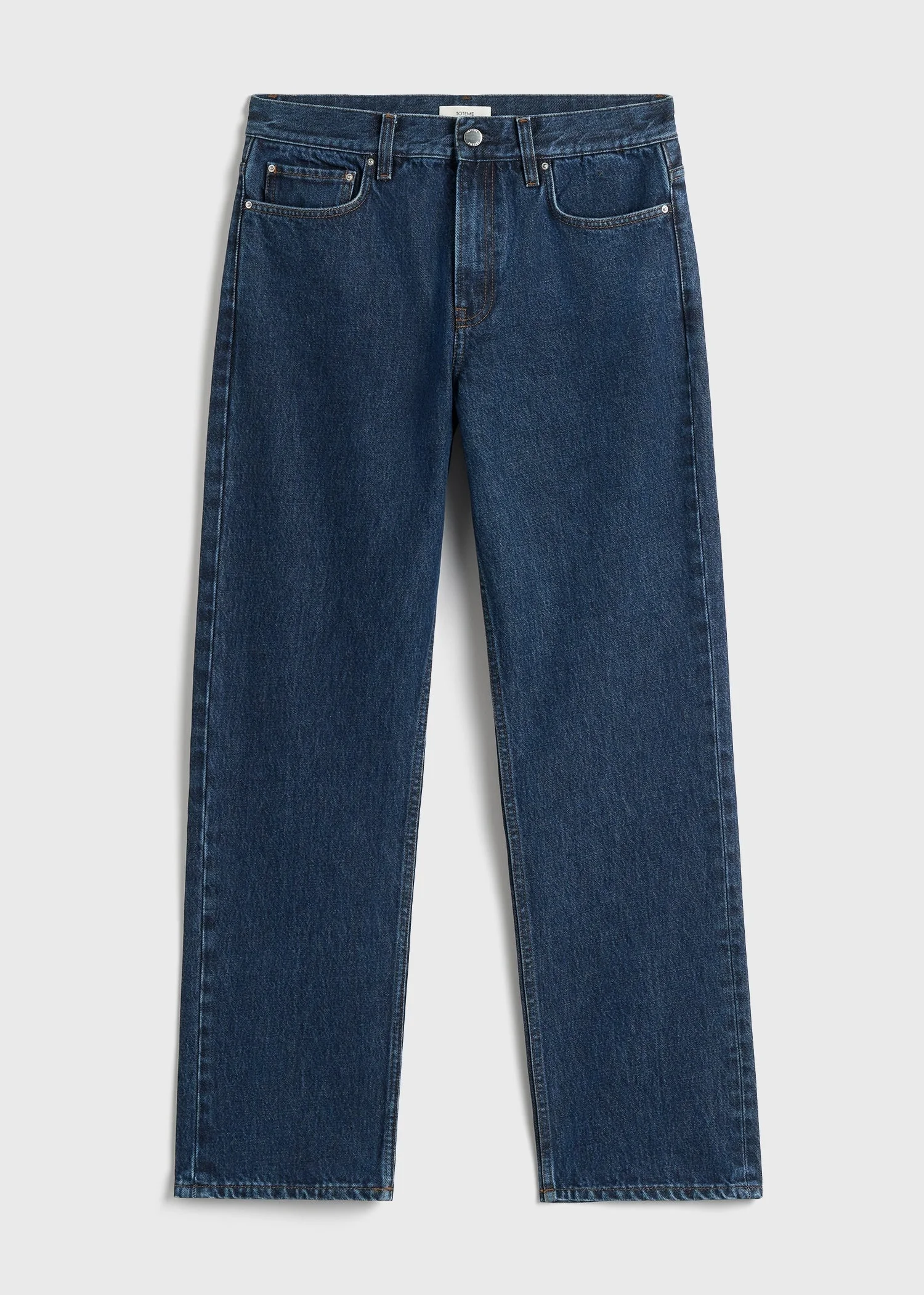 Designer’s note: “These jeans from the TOTEME Garderob curation have a classic mid-to-low waist and a straight silhouette softened by the slightly faded, Americana-style indigo wash. Partner them with heels to offset the relaxed, masculine look.” Details & Fit - Indigo - Zipper fly, silver-tone hardware - Belt loops, five pockets - Leather patch - 100% cotton organic - 30°C Machine wash - Style number 252-WRB0270-FB0045 - The model is 181cm/511 tall and wears a size 26/34 - True to size, low waist and full-length, straight legs