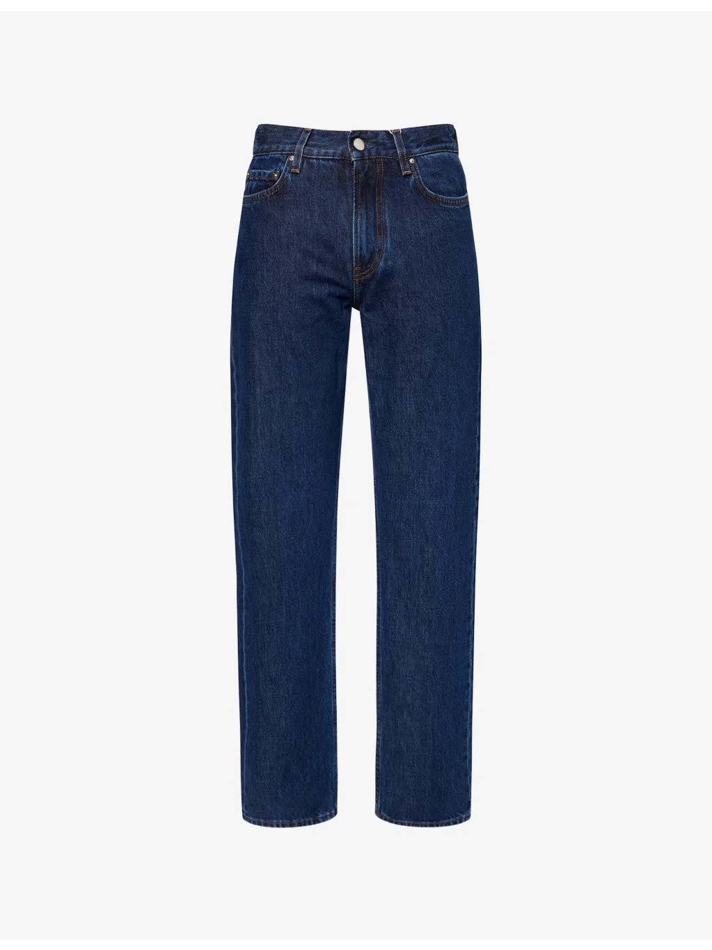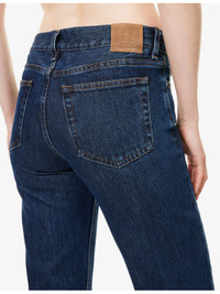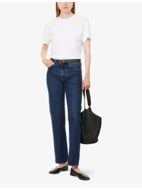 PRODUCT DETAILS - TOTEME denim jeans - 100% cotton - Button and zip-fly fastening - Straight leg, low-to-mid rise, belt loops, classic five pockets, leather brand patch at back, all-over dark wash effect, topstitch detailing - Machine wash at 30°C - Made in Italy - True to size - Size 26: rise 12in / 31cm, inside leg 31.4in / 80cm, leg opening 16in / 41cm - Model is 5ft 10in/1.78m and wears a size 26 - Midweight, non-stretch Ref: R04471247