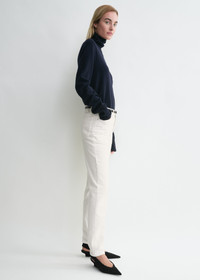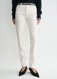 Inspired by vintage men’s denim, these low-waist jeans are cut with slim legs that taper toward the ankle — revealing a hint of skin when worn with heels. Details & Fit - White - Zipper fly, silver-tone hardware - Five pockets, belt loops, finished hem - Leather patch - 100% organic cotton - 30°C machine wash - 244-WRB0222-FB0083 - Model is 180cm/5'11 tall and wears a size 26/34 - Low waist intended to sit on the hips, slightly dropped rise, slim-tapered leg, ankle length - True to size