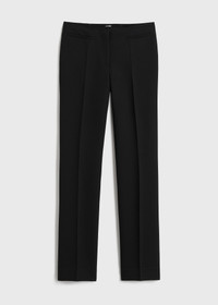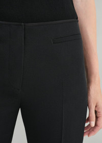 Low-rise TOTEME cigarette trousers outlined with a fine satin top edge in lieu of a waistband. Made from a structured suiting fabric, they are finished with a zipper fly and front and back jet pockets. Let the slim legs slouch over pointed shoes. Details & Fit - Black - Satin top edge - Zipper fly - Front and back jet pockets - 60% viscose, 40% wool - Dry clean - Style number 251-WRB0237-FB0336 - The model is 178cm/510 tall and wears a size 36 - Slim fit, long legs