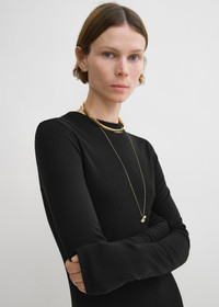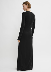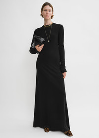 TOTEME slip-on dress marrying the ease of a long-sleeved, crew-neck T-shirt with the elegance of a floor-sweeping silhouette. It is made from mid-weight, soft Lyocell jersey with subtle ribbing at the round neck. Dress it up with heels or down with flats. Details & Fit - Black - 100% Lyocell - Cool hand wash - Style number 243-WRD1947-FB0205 - The model is 176cm/59 tall and wears a size S - True to size, slim fit