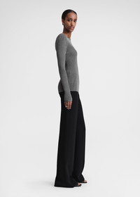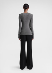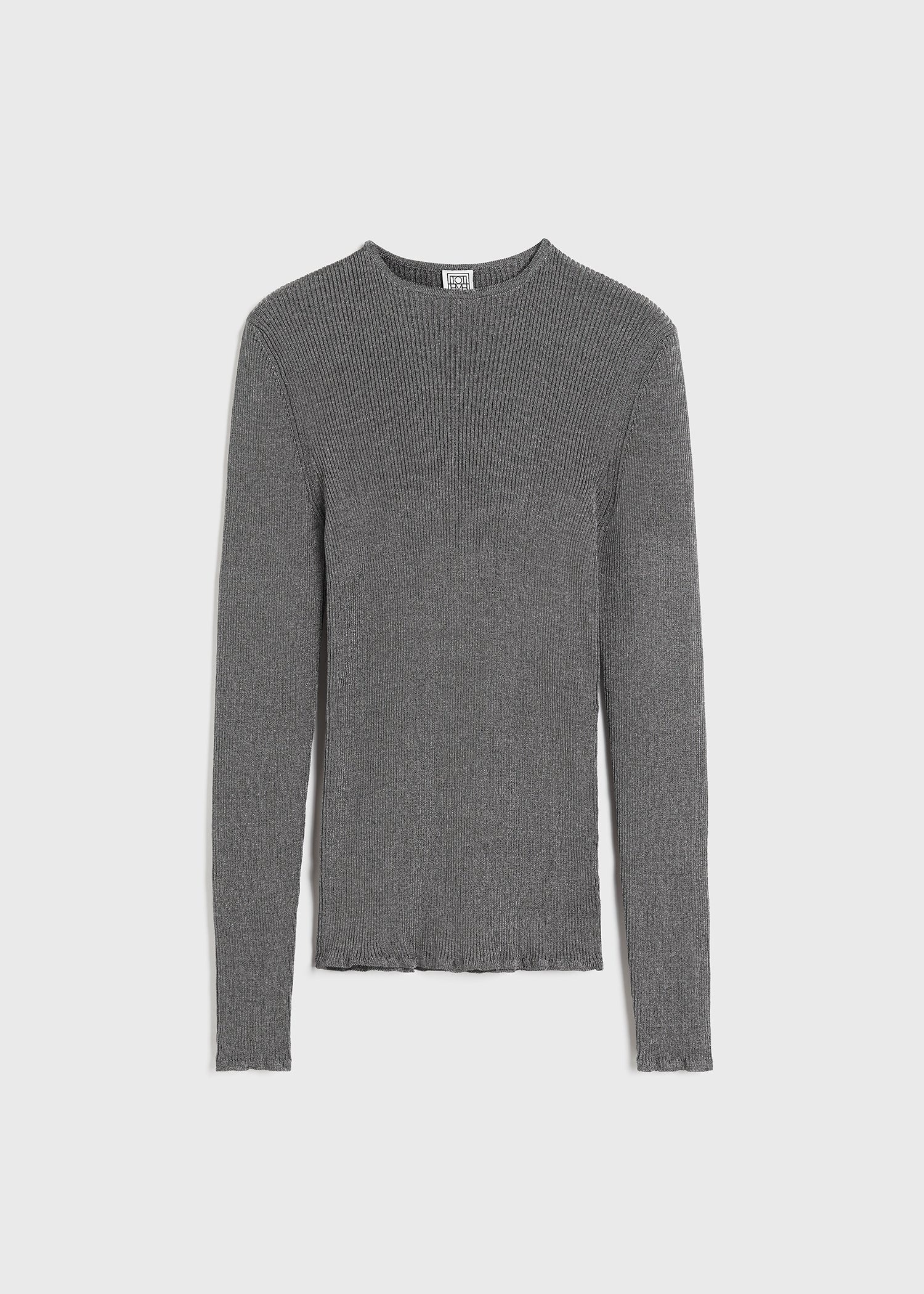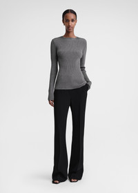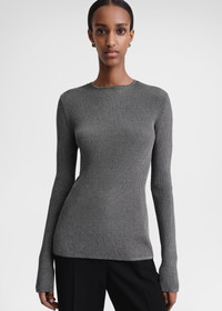TOTEME top imagined as a sober yet elegant evening piece. It's knitted as a mid-weight metallic rib made from a long-staple cotton blend and fits with a slim silhouette. Add trousers and sandals for an evening occasion. Details & Fit - Gunmetal - 70% Cotton, 30% metallic fibres - Cool hand wash - Style number 241-WRT1061-YA0027 - The model is 179cm/5'10" tall and wears a size S - True to size, regular fit