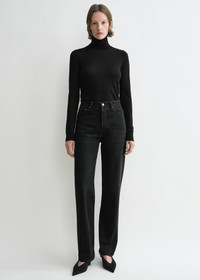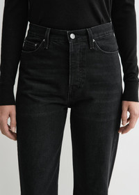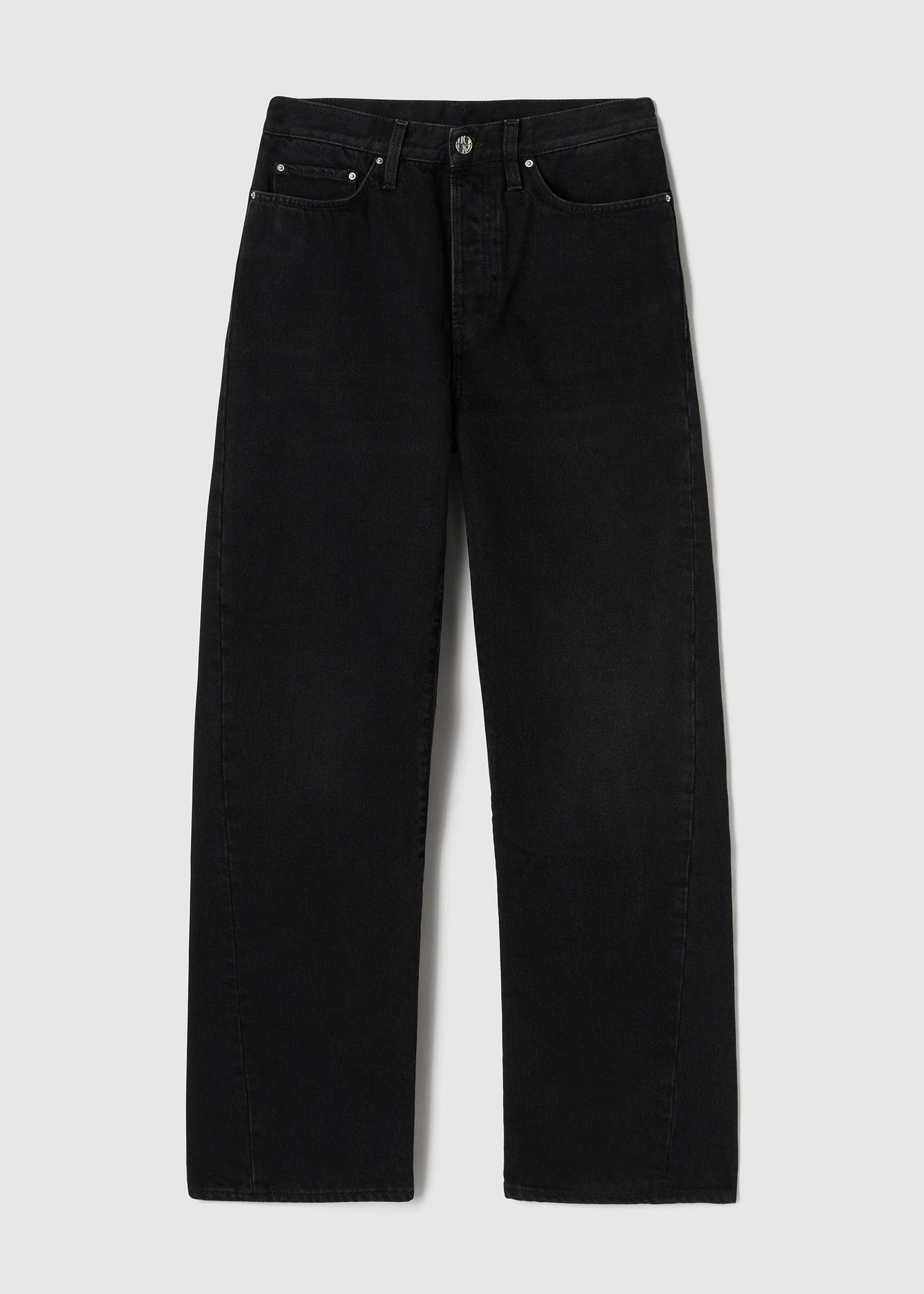 Building on TOTEME's Twisted seam denim, these jeans have a low-to-mid waistline and slightly wider and longer straight legs with some space at the thighs. They're made in Italy from mid-weight and rigid organic-cotton denim that's finished with five pockets, an embroidered monogram and a button fly. Wear them as intended for a relaxed fit or go down a size for a more fitted look. Details & Fit - Faded black - Button fly, silver-tone hardware - Belt loops, five pockets - Embroidered monogram - 100% Organic cotton - 30°C Machine wash - Style number 231-240-744 - Low-to-mid waist, long straight legs - The model is 178cm/510 tall and wears a size 26/34 - This style can run big, choose your usual size for a relaxed look or consider taking a size down