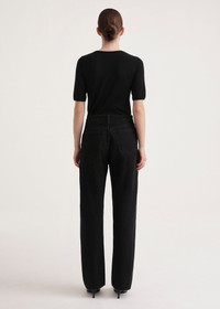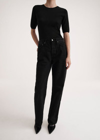 TOTEME jeans named after the signature twisted side seams running along the full-length, straight legs. They're made in Italy from mid-weight and rigid organic-cotton denim and washed following environmentally conscious practices, then finished with a mid-high waist, relaxed hips, and a button fly. Note how they will mold naturally to your body after a few wears. Details and fit - Faded black - Button fly - Belt loops, five pockets - Embroidered monogram - 100% Organic cotton - 30°C Machine wash - Style number 231-240-744 - True to size, relaxed on the hips