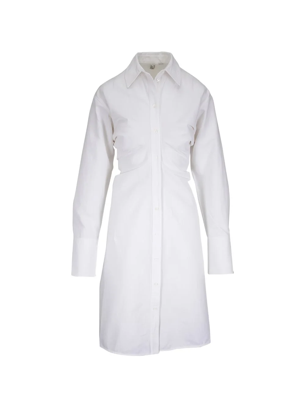 midi shirt dress Highlights - Off-white - Button fastening - Shirt collar - Long sleeves - Ruched detail Made in United States Composition Cotton 50%, Linen/Flax 50% Washing instructions Read Manufacturer Guidelines