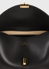The TOTEME T-lock bag revisited as a mini clutch to nestle in the hand with evening looks. It is crafted in Italy from lightly textured palmellato leather with a twist clasp and an internal card slot. Details - Black - Gold-tone metal hardware - Microsuede lining, internal card slot - 100% cow leather; lining: 60% polyamide, 40% polyurethane - Care instructions and dust bag included - Style number 261-WAL0085-LE0025 Fit information - Width 20cm/8" - Height 12cm/4.7" - Depth 8cm/3" Origin & Certificates - Country of origin: Italy - Manufacturer: Artigiani Veneziani SRL