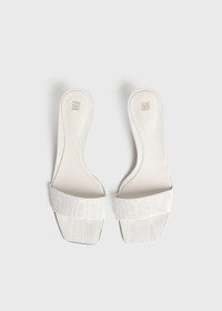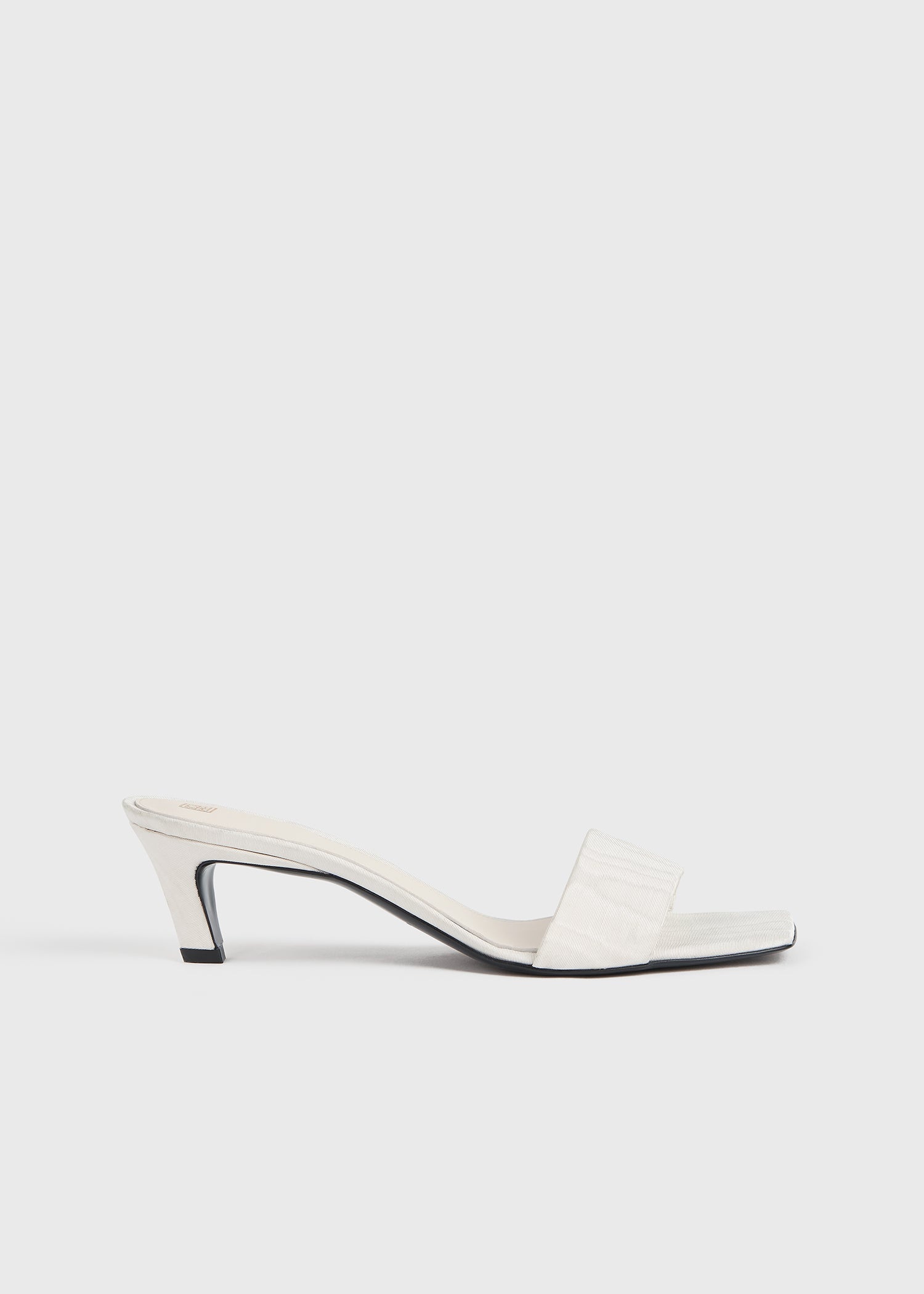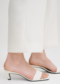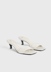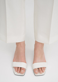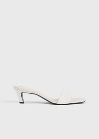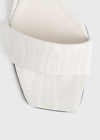 TOTEME mule sandals crafted in Italy from moire, a fabric with a wavy pattern that seems to move when looked at from different angles. Made in Italy, it has a wide strap concealing an inner thong to support the toes and rests on a slightly slanted heel measuring 55mm. Keep them in focus below cropped trousers. Details & Fit - Off-white - Inner toe thong - Leather insole and sole - 100% viscose; lining: 100% sheep leather; sole: 100% cow leather - Care instructions and dust bag included - Style number 243-WAS0154-FB0232 - Average heel height 55mm/2.2" proportional to shoe size - True to size