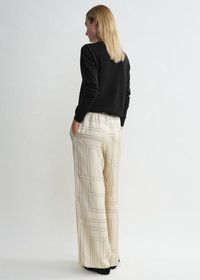 TOTEME trousers made from mid-weight, fluid silk twill embroidered with a fine monogram pattern in contrasting black thread. They have a relaxed, straight-leg silhouette inspired by classic pajamas and are finished with an elasticated waistband and side pockets. Coordinate them with the Monogram silk pj top or with a simple tank. Details & Fit - Ivory - 100% Silk - Dry clean - The position of the monogram pattern may differ from the pictures - Style number 213-755-707 - The model is 181cm/5'11 tall and wears a size 36 - True to size - </ul>