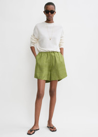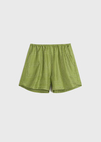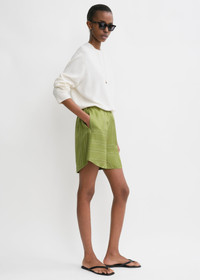 TOTEME shorts made from lightweight, fluid silk twill topstitched with a fine monogram pattern in contrasting ivory thread. They have a relaxed, straight-leg silhouette inspired by classic pajamas and are finished with an elasticated waistband and side pockets. Coordinate them with the Monogram silk pj top or with a simple tank. Details & Fit - Laurel - Ivory monogram topstitch; the position of the pattern may differ from the pictures - Elasticated waistband - Side pockets - 100% silk - Dry clean - Style number 241-WRB1141-FB0089 - The model is 180cm/511 tall and wears a size 36 - True to size