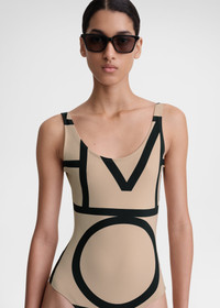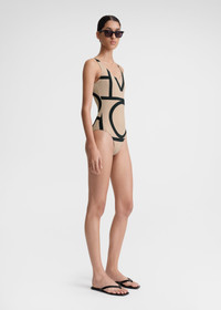This swimsuit is printed with TOTEME's signature monogram pattern in beige and black. It's made in Portugal from four way-stretch, recycled-polyamide jersey which protects against sun rays, and is shaped to a classic scoop-neck silhouette with a deep U-back. Pack it with the Monogram jacquard beach towel for your next vacation. Details & Fit - Beige - 73% Recycled polyamide, 27% elastane - 30°C Machine wash - The position of the monogram pattern may differ from the pictures - Style number 213-842-795 - True to size if you have a longer torso, consider taking a size up - The model is 179cm/510 tall and wears a size S