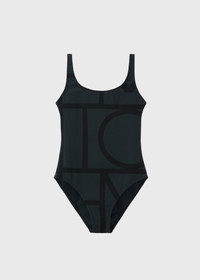 This swimsuit is printed with TOTEME's signature monogram pattern in two shades of black. It's made in Portugal from four way-stretch, recycled-polyamide jersey which protects against sun rays, and is shaped to a classic scoop-neck silhouette with a deep U-back. Pack it with the Monogram jacquard beach towel for your next vacation. Details & Fit - Black - 73% Recycled polyamide, 27% elastane - 30°C Machine wash - The position of the monogram pattern may differ from the pictures - Style number 213-842-795 - The model is 180cm/511 tall and wears a size S - True to size if you have a longer torso, consider taking a size up