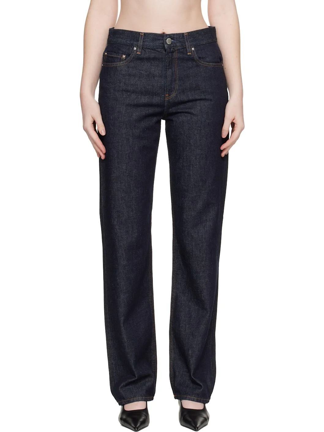 Non-stretch organic cotton denim jeans. · Straight-leg · Mid-to-low rise · Belt loops · Five-pocket styling · Zip fly · Leather logo patch at back waistband · Contrast stitching in tan Part of the Garderob collection. Supplier color: Rinsed Blue 100% organic cotton. Made in Italy 261771F069002