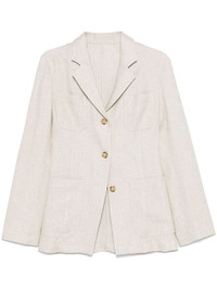 notched-lapels blazer Highlights - Light beige - Front button fastening - Long sleeves - Four front patch pockets - Italian rear vents Imported Composition Lining: Viscose 100% Outer: Viscose 67%, Linen/Flax 33% SIZE & FIT Model measurements Height 5 ft 10 in(1.78 m) Bust/Chest 33.85 in(86 cm) Hips 36.61 in(93 cm) Waist 26.77 in(68 cm) FittingInformation Designed for a slim fit that sits just away from the body offering a close yet comfortable fit Made from a midweight non-stretch fabric