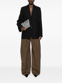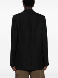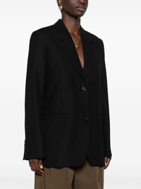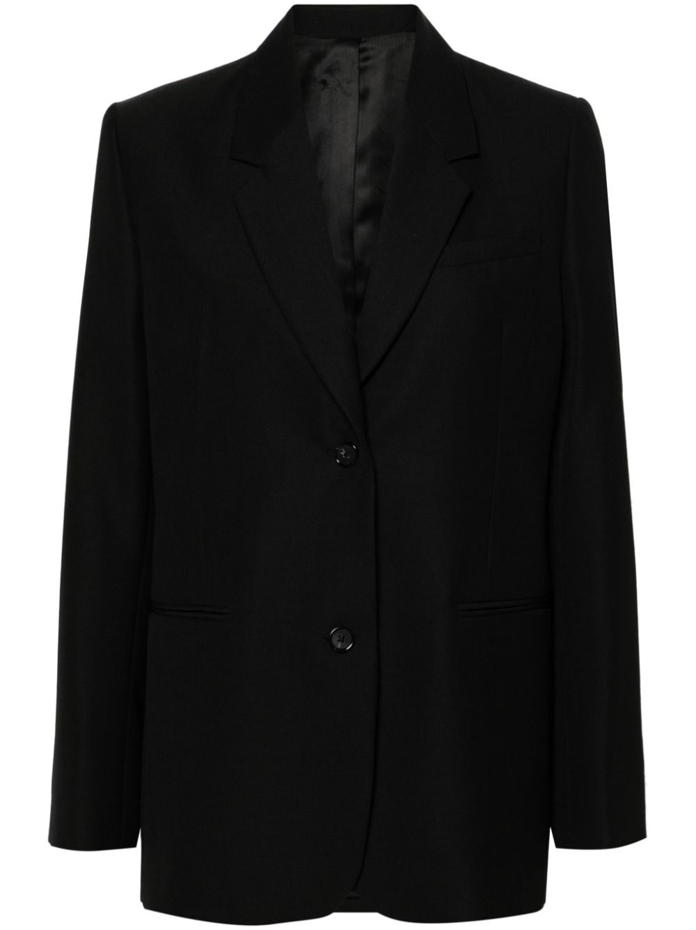 notched-lapels single-breasted blazer Highlights - Black - Recycled polyester blend - Textured finish - Dart detailing - Notched lapels - Front button fastening - Shoulder pads - Long sleeves with buttoned cuffs - Chest welt pocket - Two front jetted pockets - Internal jetted pocket - Italian rear vents - Straight hem - Full lining - This item is made from at least 50% recycled or upcycled materials. for recycled synthetic clothing products, we highly recommend using a microfibre-catching washing bag to ensure that no microplastics that can pollute water are released in the process. - Learn more about what makes a product conscious on our conscious criteria page Imported Composition Lining: Viscose 100% Outer: Recycled Polyester 55%, Virgin Wool 45% SIZE & FIT Model measurements Height 5 ft 9 in(1.76 m) Bust/Chest 32.28 in(82 cm) Hips 35.03 in(89 cm) Waist 24.8 in(63 cm) FittingInformation Designed for a boxy fit, intended for a loose fit throughout Made from a midweight non-stretch fabric This piece fits true to size – take your usual size