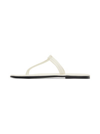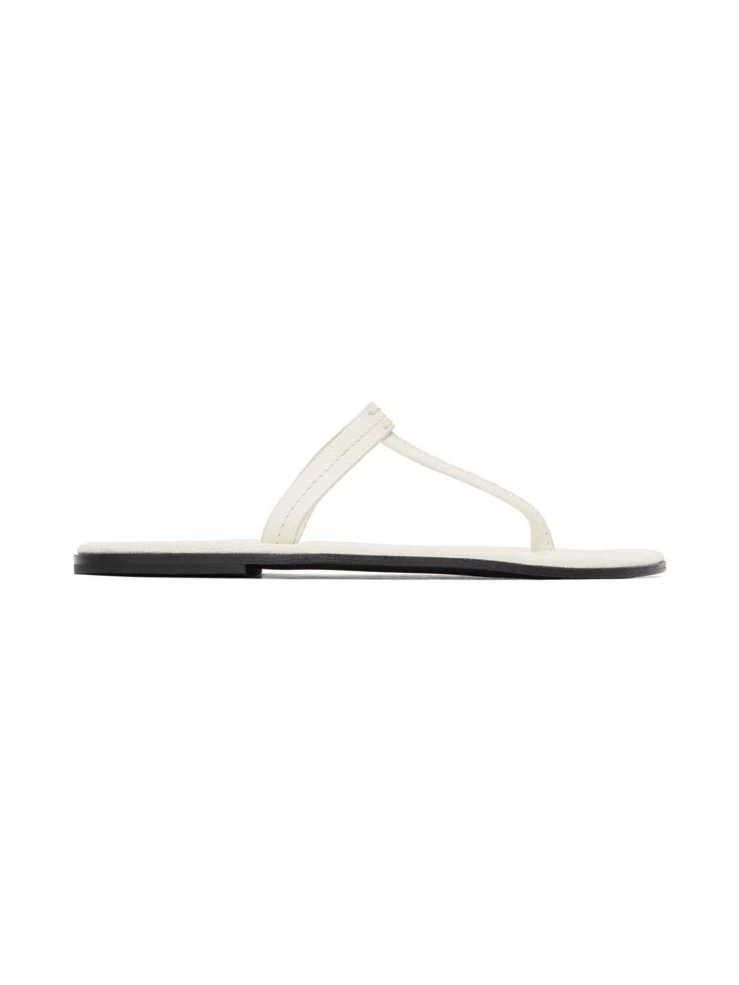 Grained calfskin slip-on sandals in off-white. · Open round toe · Thong-style strap at vamp · Logo embossed at padded footbed · Leather sole with rubber injection Supplier color: Off white