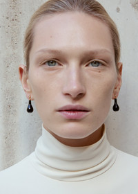 TOTEME earrings imbuing a sense of fluidity into the architectural ready-to-wear pieces featured in the Summer 25 runway collection. They are made in Italy as sculptural drops carved out of black onyx and set with a Swarovski crystal, bringing delicate softness to the semi-precious stone. Watch them sway organically as you move – a subtle nod to the collection's bohemian theme. Details & Fit - Black/gold - Black onyx pendant, Swarovski crystals - 100% brass plated with recycled 18kt yellow gold - This piece is made using natural stone, please handle them with care. To clean the stone, wash it gently using warm water and a neutral soap. - Style number 253-WJQ0086-JA0010 - Pendant length 2cm - Pendant circumference 2.1cm - Post-back fastening, ears must be pierced