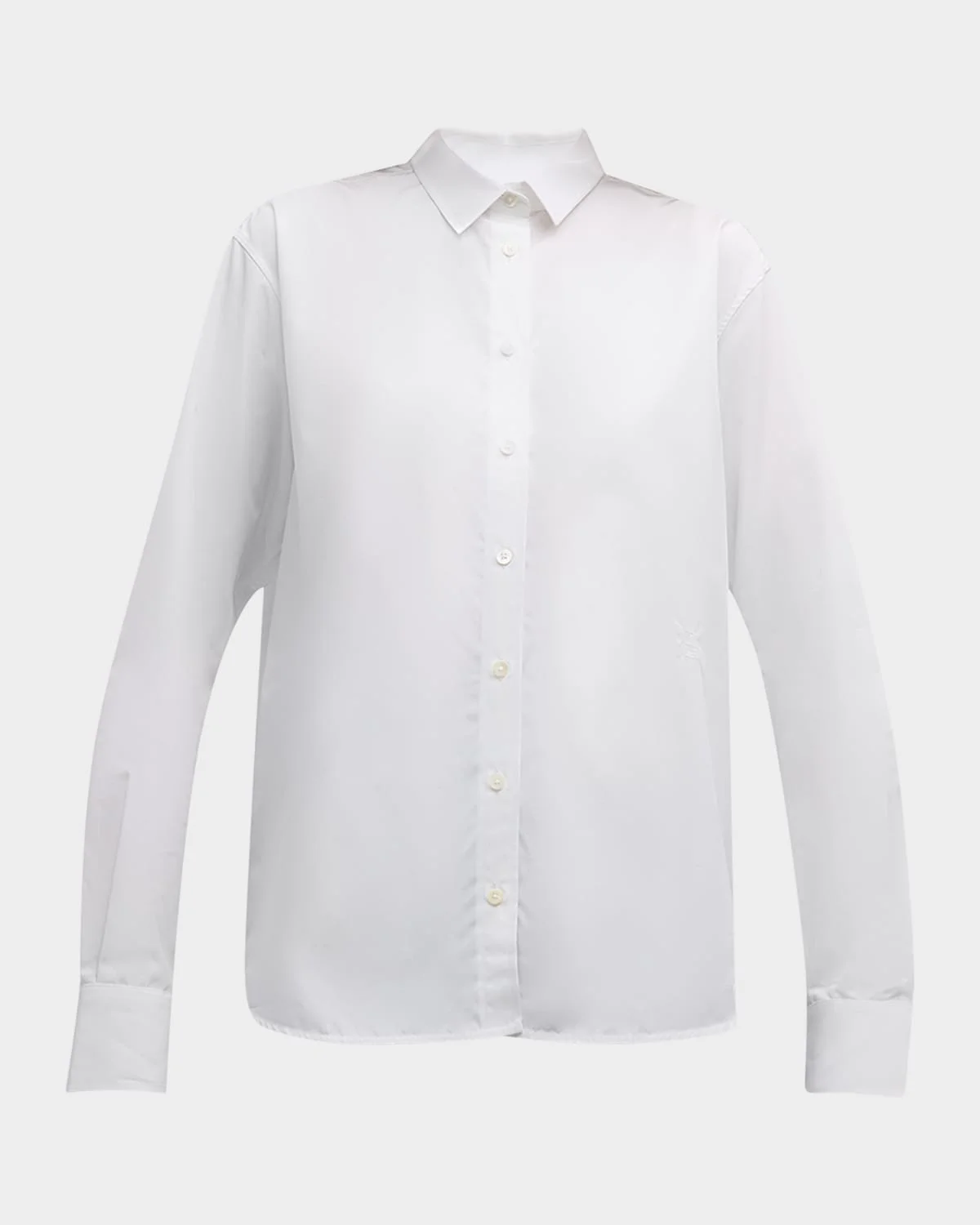 Toteme crisp poplin shirt finished with embroidered monogram logo Spread collar; buttonfront placket Long sleeves; button cuffs Yoked back with box pleat Oversized fit Curved hem Organic cotton Machine wash Made in Portugal