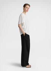 TOTEME T-shirt made in Portugal from light and soft organic-cotton jersey. It’s designed for an oversized fit and has a round neck, signature twisted seams along the sides, and a straight hem. Complete an everyday look with jeans and heels. Details & Fit - Off-white - 100% organic cotton - 30°C Machine wash - Style number 224-472-770 - Designed for an oversized fit, go down a size if you prefer a neater look - The model is 177cm/58 tall and wears a size S