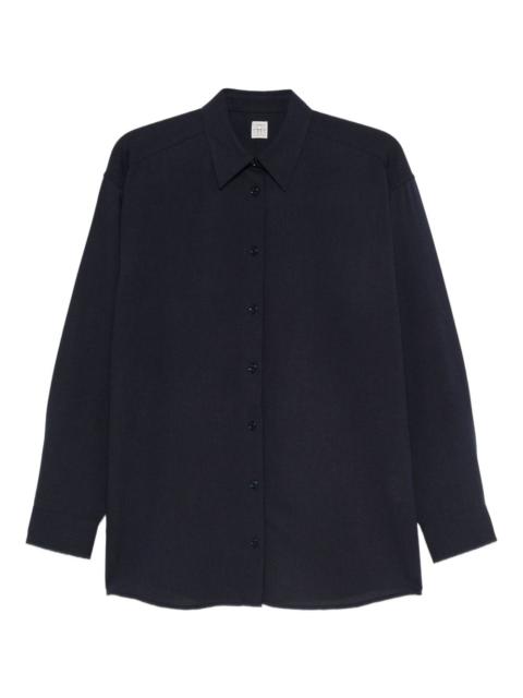 Classic Fluid shirt Highlights - Navy blue - Classic collar - Long sleeves - Button fastening - Curved hemline Imported Composition Viscose 90%, Wool 10% SIZE & FIT Model measurements Height 5 ft 9 in(1.75 m) Bust/Chest 34.64 in(88 cm) Hips 36.61 in(93 cm) Waist 26.37 in(67 cm) Washing instructions Read Manufacturer Guidelines