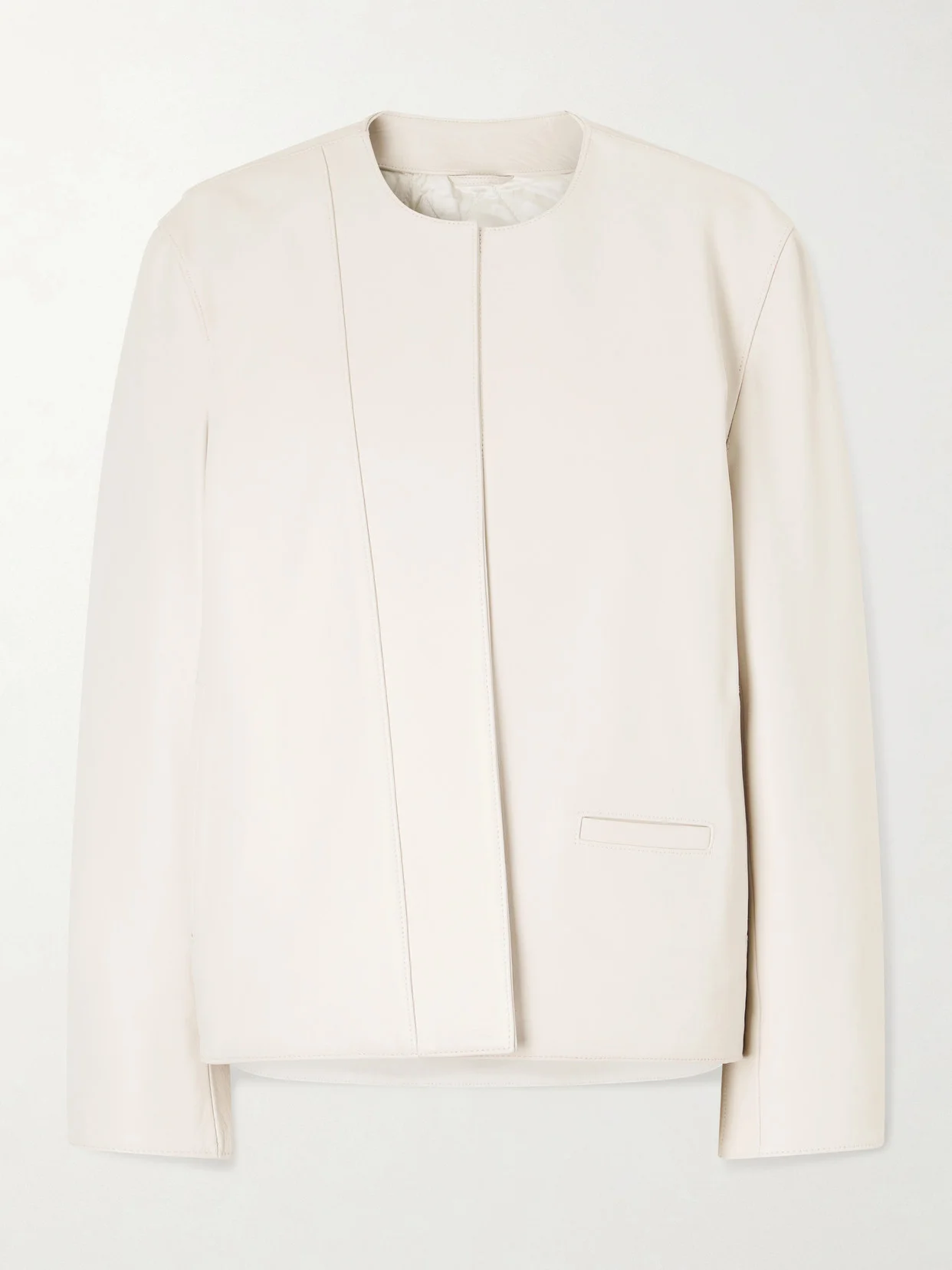 TOTEME serves up a signature minimal take on the biker-inspired jacket. Made from buttery leather, it's padded for shape and has a chic collarless neckline. Take cues from the brand's styling and wear it with neutrals.