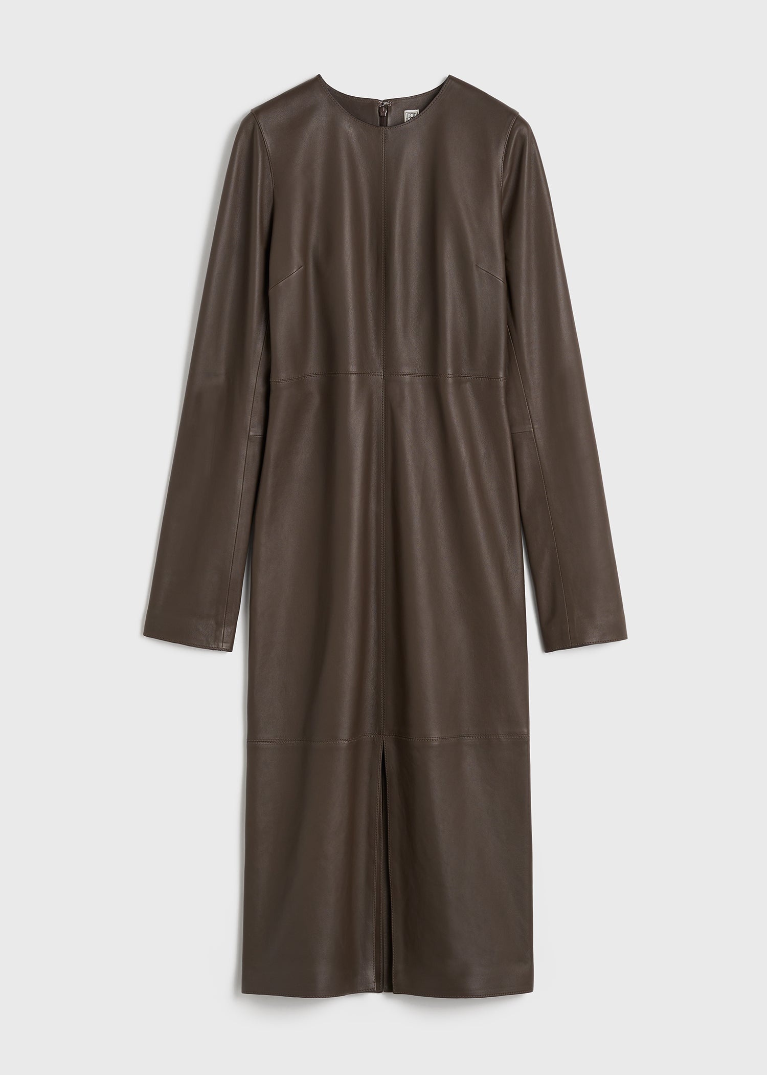 TOTEME dress with a minimalist paneled midi construction that hugs the body into a slim silhouette. It is made from supple leather with a front slit and fastens with a concealed back zipper. Simply add boots for after-work drinks. Details & Fit - Bark - Front slit - Concealed back zipper - 100% lamb leather - Specialist clean - Style number 244-WRD0148-LE0055 - The model is 178cm/510 tall and wears a size 36 - True to size, slim fit
