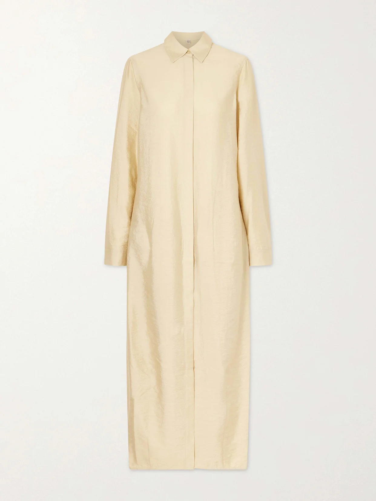 TOTEME's signature minimalist style is subtly elevated by the parachute silhouette of this dress. Made from silk-blend, it is designed as a shirt dress with a classic collar and buttoned front. Style yours with minimal sandals.