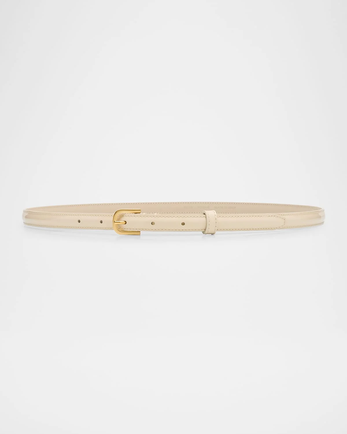 - Toteme belt in patent leather - Approx. 0.6"W - Silver-tone metal buckle - Adjustable fit - Cut to size - Made in Italy