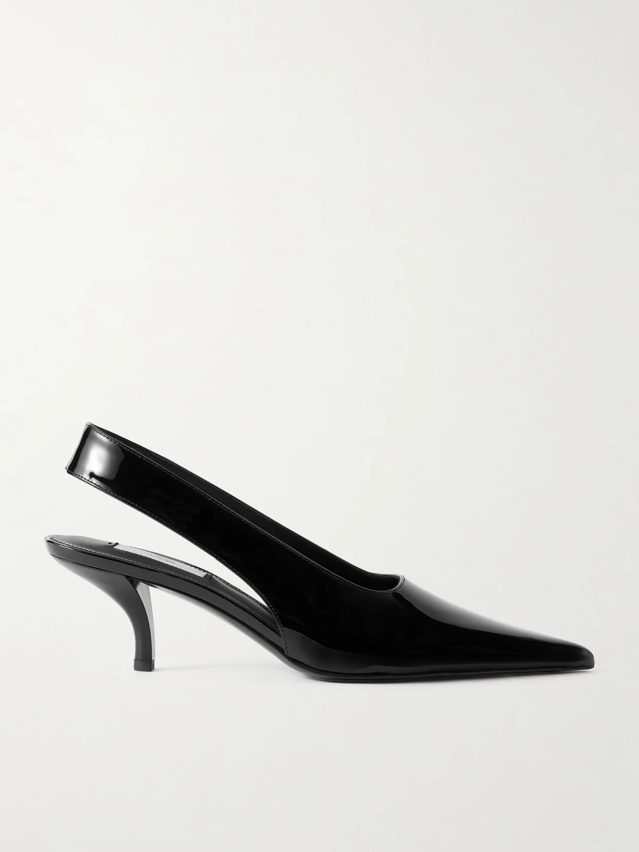 TOTEME's pumps have an elongated pointed toe - the Swedish brand often elevates classics with considered, modern touches. They're made from glossy patent-leather with a slingback strap.