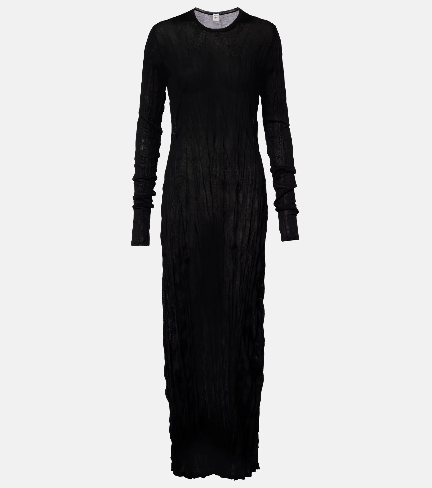 Define your dress code with styles from Toteme, a Stockholm-based brand dedicated to creating a modern uniform. This maxi dress showcases a column silhouette, enhanced by all-over pleats with a crinkled finish. Product Details - Material: 75% viscose, 25% polyester (recycled) - Care instructions: hand wash - Made in China - Color: black - Designer color name: Black - Item number: P01150287 Size & Fit - True to size - Semi-sheer - Cinched waist - Non-stretchy fabric - The model seen in the picture is 178cm-5'10" and wearing a size XS