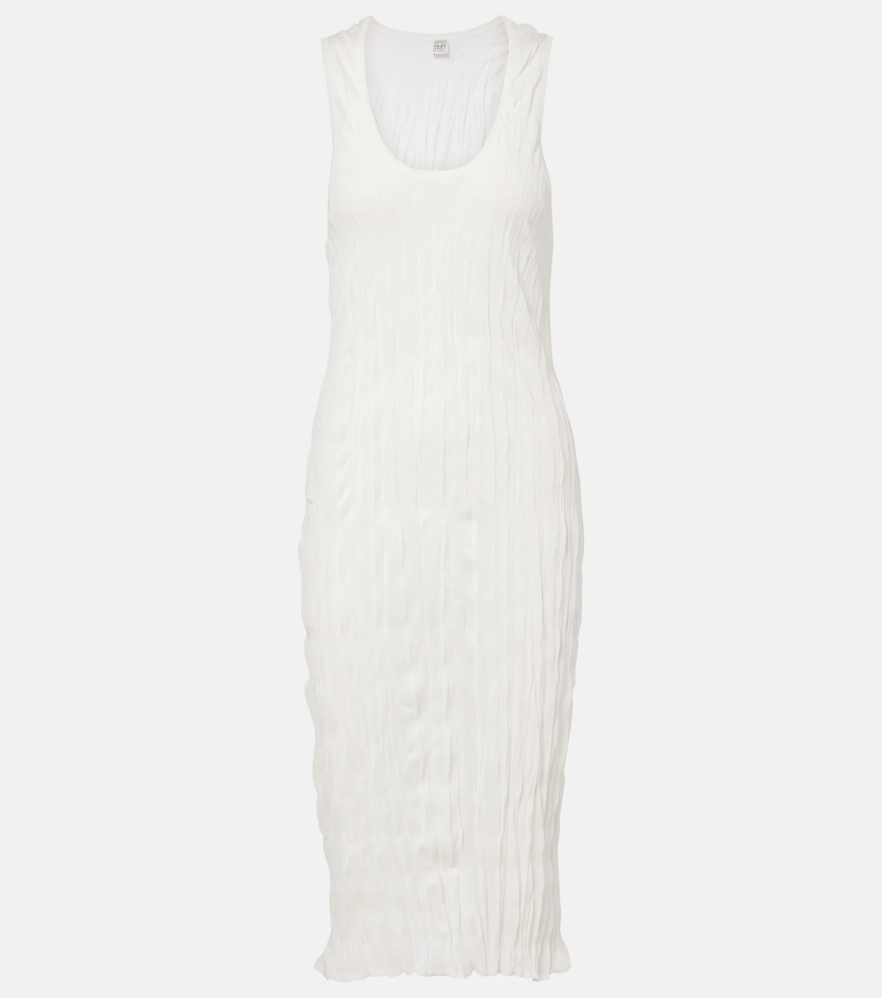 Define your dress code with styles from Toteme, a Stockholm-based brand dedicated to creating a modern uniform. This midi dress showcases a fitted silhouette, enhanced by all-over pleats with a crinkled finish. Product Details - Material: 75% viscose, 25% polyester (recycled) - Care instructions: hand wash - Made in China - Color: white - Designer color name: White - Item number: P01150294 Size & Fit - True to size - Semi-sheer - Cinched waist - Non-stretchy fabric - The model seen in the picture is 178cm-5'10" and wearing a size XS