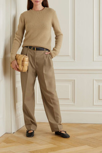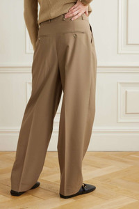 EDITORS'NOTES Every wardrobe needs a pair of expertly tailored pants just like TOTEME's. Designed to sit high on the waist, they're cut from recycled grain de poudre and pressed with double pleats through the hips and wide legs. Thread a slim belt through the loops for a refined finish. SIZE & FIT TOTEME follows its own size guide, please refer to below: - DK 32 = UK 4/ US 0/ IT 36 - DK 34 = UK 6/ US 2/ IT 38 - DK 36 = UK 8/ US 4/ IT 40 - DK 38 = UK 10/ US 6/ IT 42 - DK 40 = UK 12/ US 8/ IT 44 - DK 42 = UK 14/ US 10/ IT 46 - Fits true to size, take your normal size - High-rise, tailored for a wide-leg fit - Mid-weight, non-stretchy fabric - Model is 177cm/ 5'10" and is wearing a DK 36 DETAILS & CARE - Camel recycled grain de poudre - Concealed button, hook and zip fastening at front - 55% recycled polyester, 45% wool - Designer color: Biscuit - This product has been made with responsibly sourced wool, originating from farms protecting animal welfare and implementing progressive land management practices