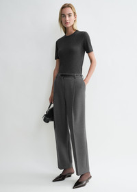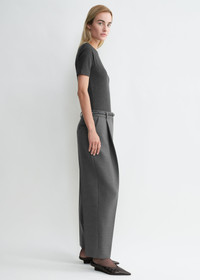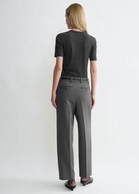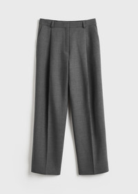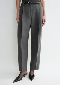 TOTEME trousers cut to a low-waist, nearly straight silhouette structured with deep front pleats – a nod to our penchant for tailoring. They are made from a spongy blend of recycled polyamide and certified wool fibers finished with traditional belt loops, side and back pockets and a zipper fly. Wear them with a coordinated top for a day event. Details & Fit - Grey - Belt loops, deep front pleats - Side and back pockets - Zipper fly - 53% polyamide recycled, 43% wool RWS, 4% elastane - Dry clean - Style number 251-WRB0254-FB0061 - The model is 179cm/5'10" tall and wears a size 36 - High waist, low crutch
