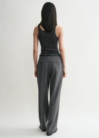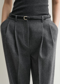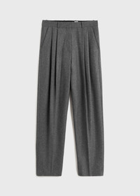 These suit trousers are a new expression of TOTEME's distinctive tailoring codes. They are made from light and soft wool-blend flannel with a low, hip-hugging waistband and straight legs that have pockets and double pleats running seamlessly down the front. Complete a monochromatic look with a tonal top. Details & Fit - Grey melange - Belt loops - Side and back pockets - Zipper fly - 70% recycled wool, 25% polyamide, 5% other fibers - 30°C machine wash - Style number244-WRB847-FB0024 - The model is 180cm/5'11 tall and wears a size 36 - Fits large, consider taking a size down
