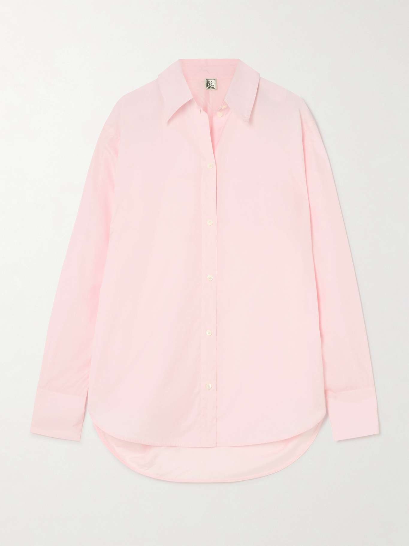 EDITORS'NOTES TOTEME specializes in neutral tones, punctuating them with flashes of color, like the baby-pink of this shirt. It's cut from crisp organic cotton-poplin in a slightly loose profile, enhanced by elongated cuffs that create gathering at the wrists. Style yours with denim and ballet flats. SIZE & FIT Model measurements: - Fits true to size, take your normal size - Designed for a slightly loose fit - Mid-weight, non-stretchy fabric - Model is 180cm/ 5'11" and is wearing a DK 34 - Bust: 80cm/ 31.5" - Waist: 67cm/ 26" - Hip: 89cm/ 35" DETAILS & CARE - Baby-pink organic cotton-poplin - Button fastenings through front - 100% organic cotton - Designer color: Blossom