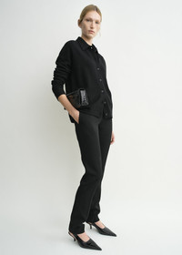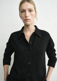 Raglan-sleeved TOTEME cardigan knitted from spongy cashmere for a warm and cozy feeling. It has a point collar and buttoned placket framed by a relaxed silhouette. Wear it with jeans to the movies. Details & Fit - Black - Buttoned front and cuffs - 100% cashmere - Cool hand wash - Style number 243-WRT0347-YA0016 - The model is 176cm/59 tall and wears a size S - True to size, relaxed fit