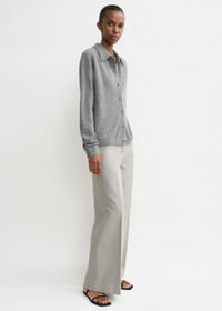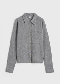 Raglan-sleeved TOTEME cardigan knitted from spongy cashmere for a warm and cozy feeling. It has a point collar and buttoned placket framed by a relaxed silhouette. Wear it with jeans to the movies. Details & Fit - Grey melange - Buttoned front and cuffs - 100% cashmere - Cool hand wash - Style number 243-WRT0347-YA0016 - The model is 180cm/511 tall and wears a size S - True to size, relaxed fit