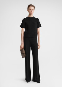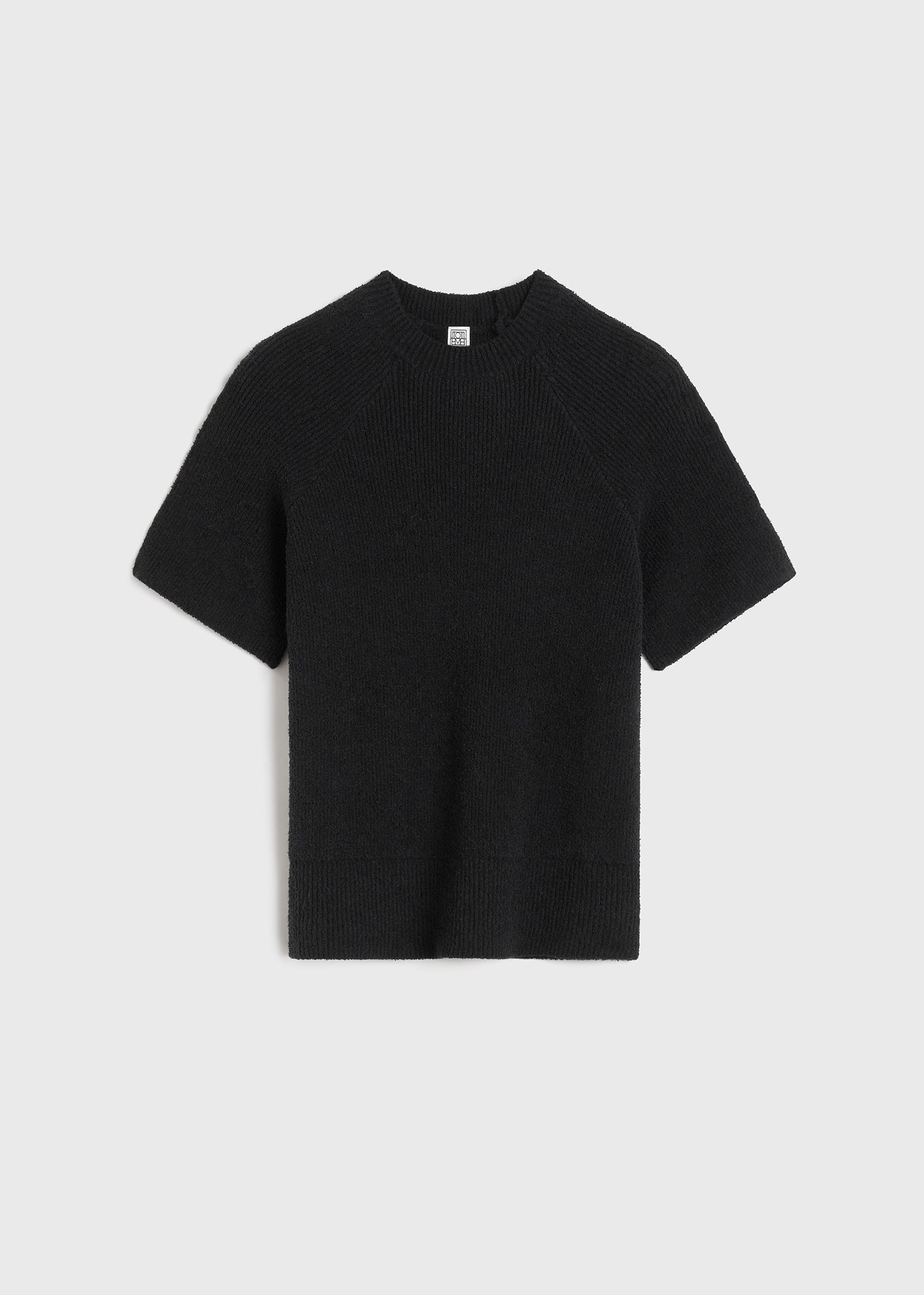 TOTEME top with short raglan sleeves for a sporty yet elevated feel. It's knitted from stretch cotton-blend terry to a slim silhouette that can be teamed with anything from jeans to evening trousers. Details & Fit - Black - 70% cotton organic, 30% polyamide - Cool hand wash - Style number 242-WRT2204-YA0043 - The model is 179cm/5'10" tall and wears a size S - Slim fit, true to size