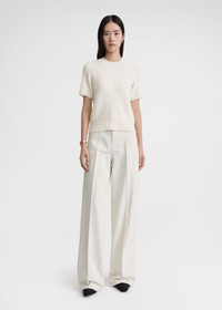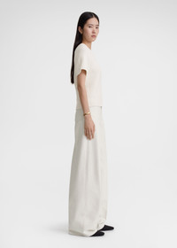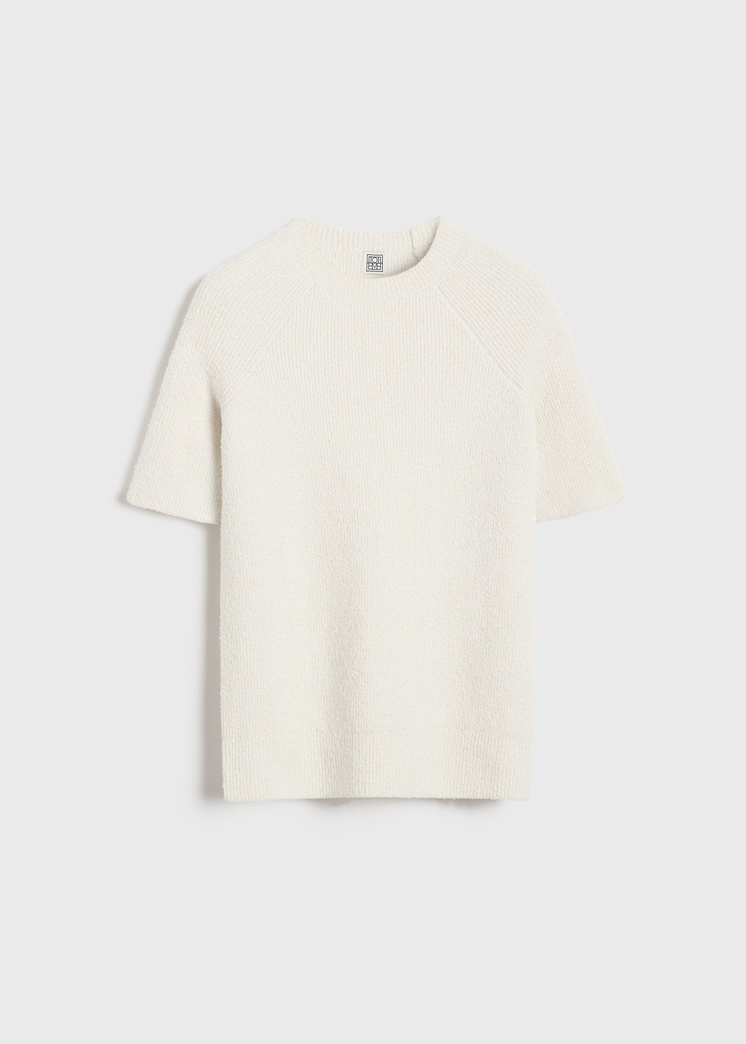TOTEME top with short raglan sleeves for a sporty yet elevated feel. It's knitted from stretch cotton-blend terry to a slim silhouette that can be teamed with anything from jeans to evening trousers. Details & Fit - White - 70% cotton organic, 30% polyamide - Cool hand wash - Style number 242-WRT2204-YA0043 - The model is 179cm/5'10" tall and wears a size S - Slim fit, true to size