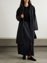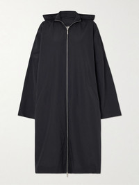 TOTEME’s coat is cut from recycled-shell that’s lightweight and waterproof, so it's a practical choice for days when the weather is unpredictable. It’s fitted with a roomy hood and has an enveloping, longline shape that fastens with a two-way zipper. Size & Fit - Fits true to size, take your normal size - Designed for a slightly loose fit - Mid-weight, stretchy fabric - Model is 180cm/ 5'11" and is wearing a DK 34 Model measurements: - Bust: 80cm/ 31.5" - Waist: 67cm/ 26" - Hip: 89cm/ 35" Details & Care - Black recycled-shell - Two-way zip fastening through front - 100% recycled polyamide - Designer color: Nightfall