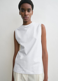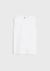 This sleeveless rendition of TOTEME's Classic cotton tee is outlined with a high crew neckline and a regular-fitting straight silhouette. Made from fresh organic cotton jersey, it is finely ribbed at the collar and armholes. Dress it up with a necklace and tailored trousers. Details & Fit - Off-white - 100% organic cotton - 30°C Machine wash - Style number 243-WRT0345-FB0093 - The model is 176cm/59 tall and wears a size S - True to size, regular fit