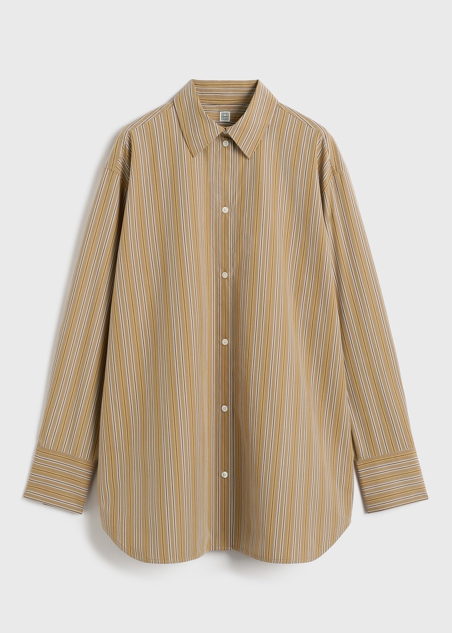 This relaxed TOTEME shirt is woven with caramel, cornsilk, black and grey stripes. It has a long silhouette made from organic cotton that's washed for a peachy hand feel and is buttoned along the placket and cuffs. Tuck it into trousers to work. Details & Fit - Caramel, cornsilk, black and grey stripes - Buttoned placket and cuffs - Back yoke, box pleat - 100% cotton organic - 40°C Machine wash - Style number 242-WRT1415-FB0119 - The model is 178cm/510 tall and wears a size 36 - Relaxed fit, true to size