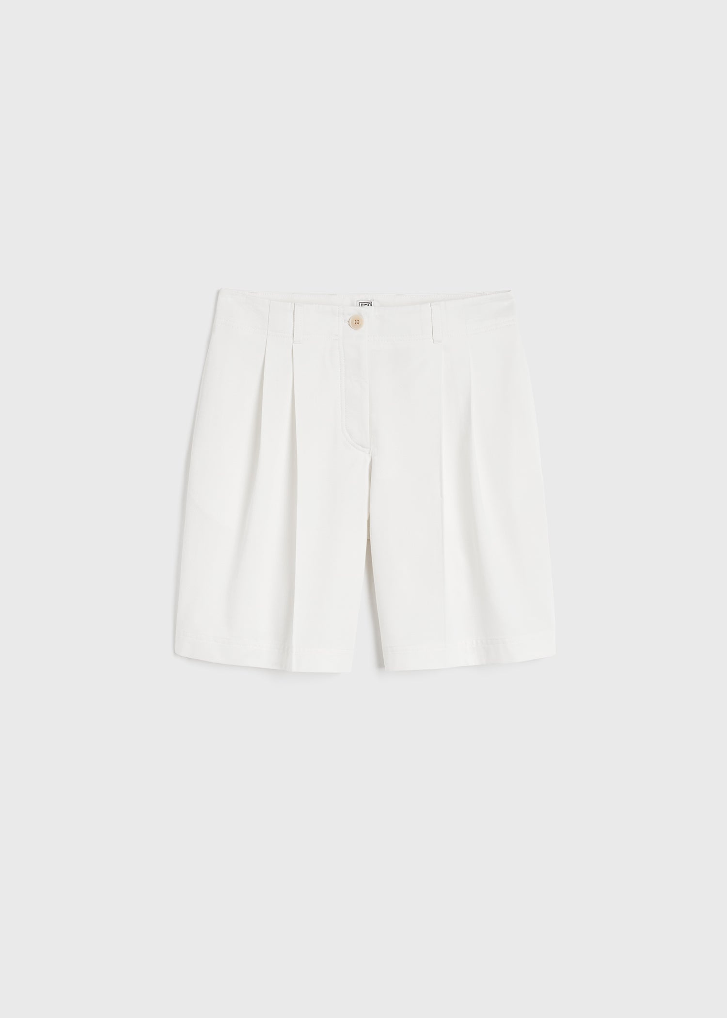 TOTEME reimagines classic chinos with these neat shorts. They're made from organic-cotton twill with belt loops, a button fly, side and back pockets, and precise front pleats falling into relaxed wide legs. Wrap a sweater around the waist for a play on volume. Details & Fit - White - Belt loops - Side and back pockets - Concealed button fly - 100% cotton organic - 30°C Machine wash - Style number 242-WRB1655-FB0103 - The model is 178cm/510 tall and wears a size 36 - Regular fit, true to size