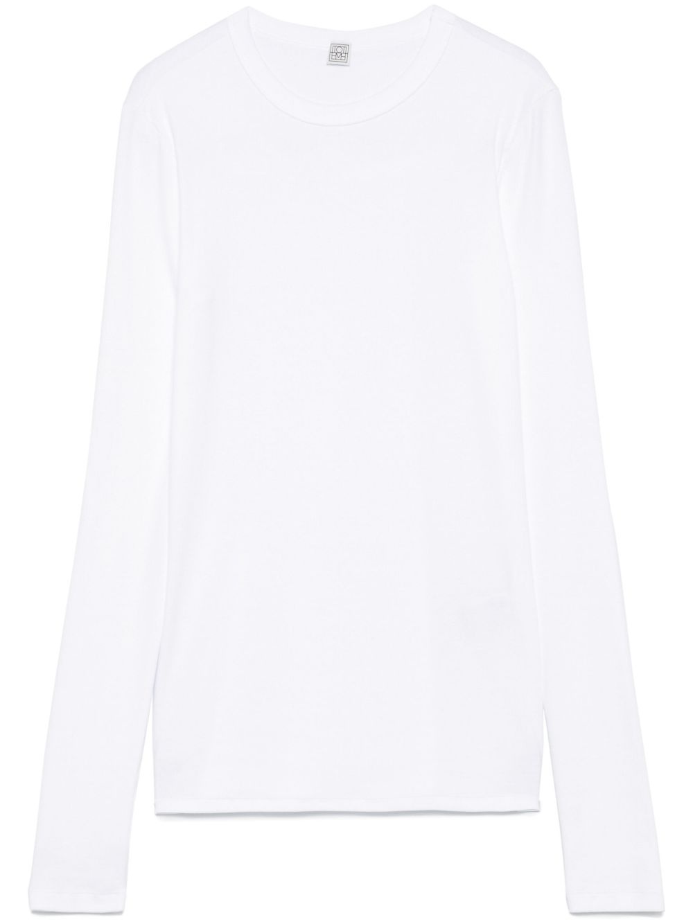 long-sleeve jersey T-shirt Highlights - White - Crew neck - Long sleeves Imported Composition Cotton 93%, Spandex/Elastane 7% SIZE & FIT Model measurements Height 5 ft 9 in(1.75 m) Bust/Chest 31.88 in(81 cm) Hips 34.64 in(88 cm) Waist 24.01 in(61 cm) FittingInformation Designed for a slim fit that sits just away from the body offering a close yet comfortable fit Made from a midweight stretch fabric, this piece offers elasticity and flexibility when worn